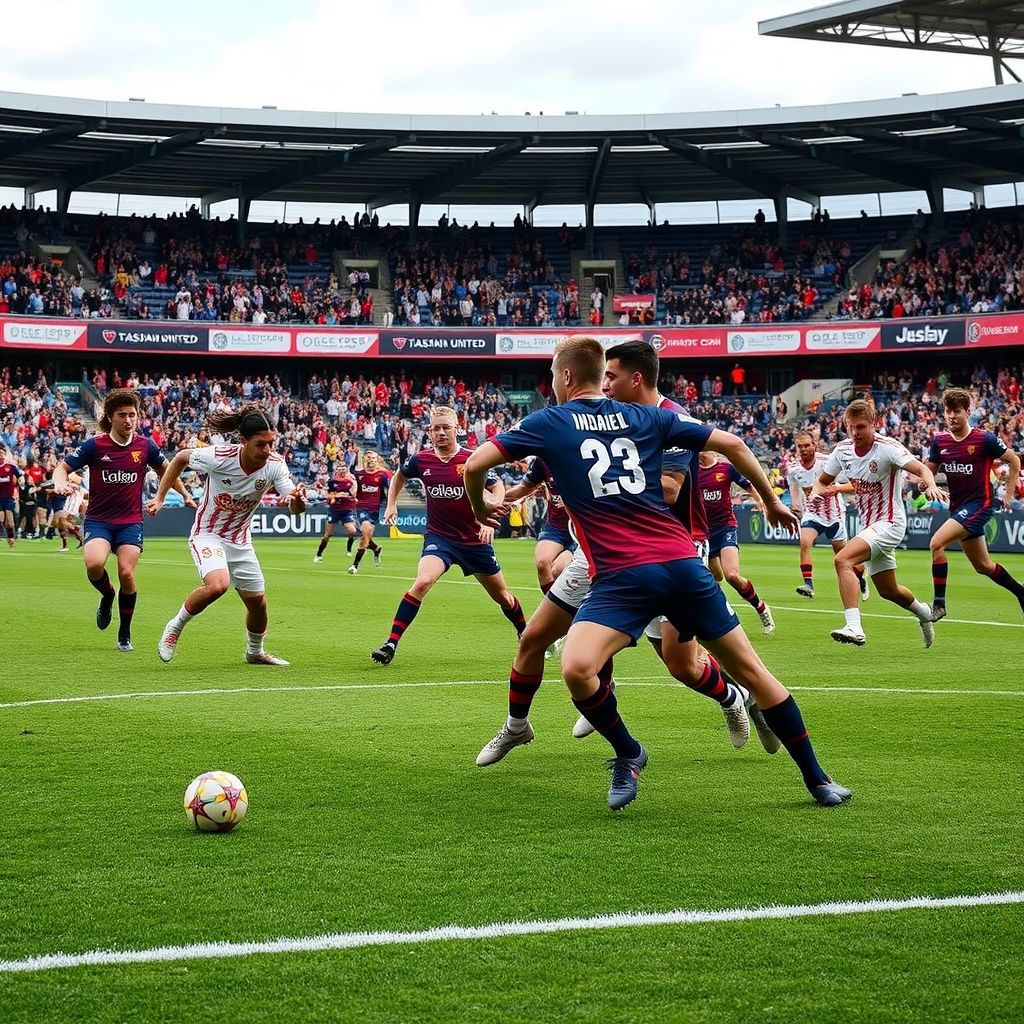在进攻端,塔斯马尼亚联队展现出了极强的个人能力和团队协作。他们通过精确的传球和默契的配合,使得攻势始终保持高效与强度。球队的中场核心通过快速的视野切换,能够在对方防线尚未完全站位时,将球精准地传给处于有利位置的前锋。这样一来,塔斯马尼亚联队的进攻不仅迅猛,而且极具威胁。在这一系列快速攻防转换的推进下,球队有效拉开了对手的防线,为攻击手创造了更多的进攻空间。