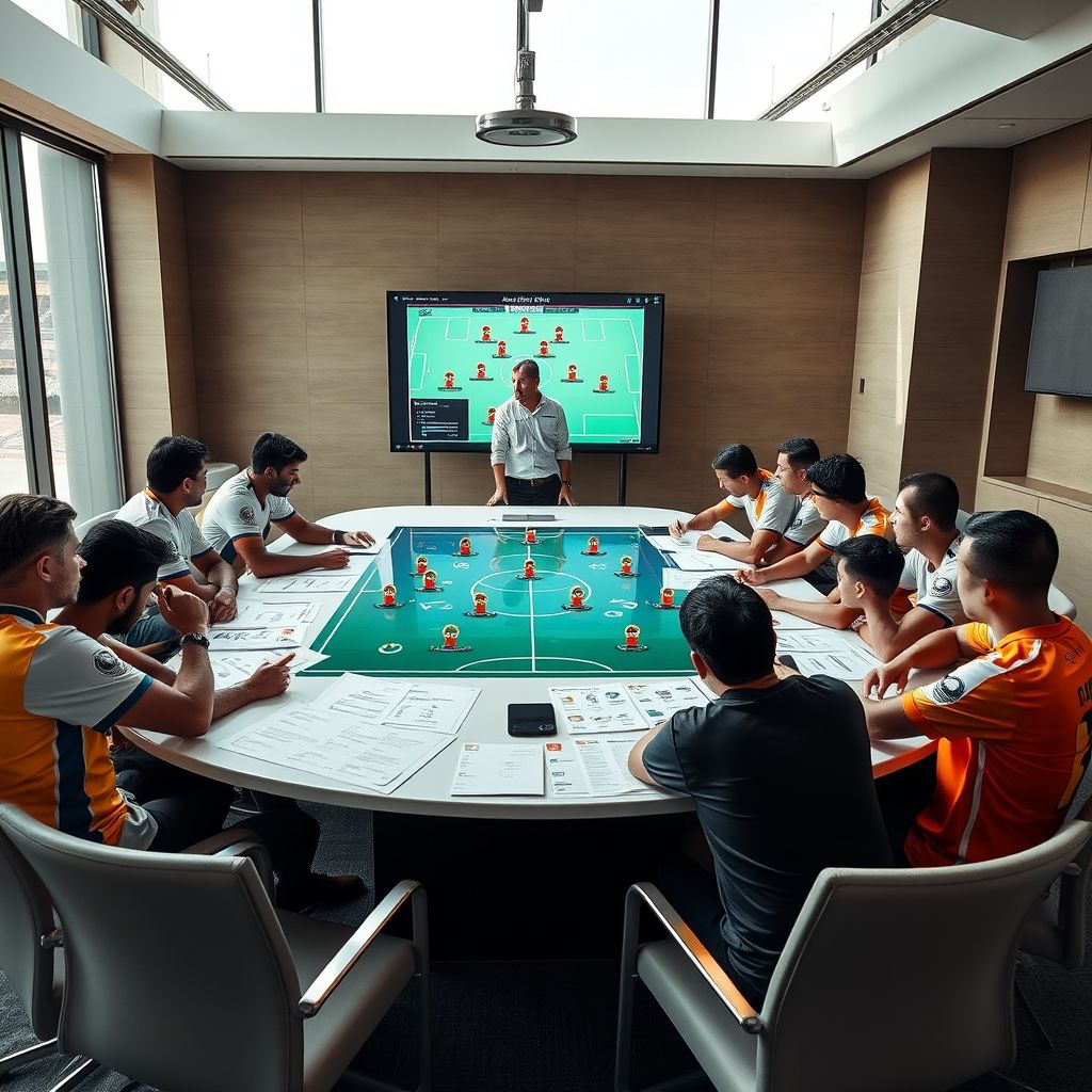 接下来的讨论环绕着细节展开,教练不仅要求队员们要在场上保持高度的专注力,还强调了团队合作的重要性。比如,边路进攻时,如何利用两名边锋的跑位牵制对方防线,如何通过中场球员的精准传球打破对方防守体系,甚至在球员倒地后如何迅速恢复阵型以防止对方反击。所有这些细节的精准把控,决定了球队在比赛中能否占得先机。